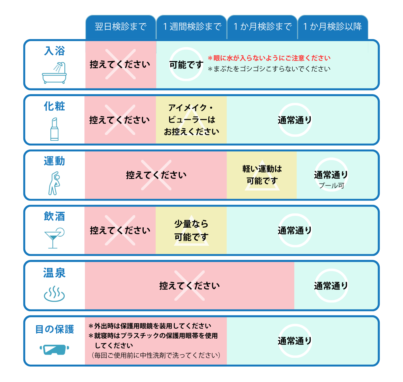 活動再開の時期は眼の状態によって異なりますので、詳細については担当医へご確認ください。