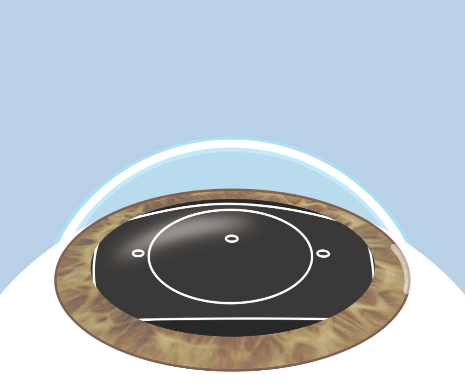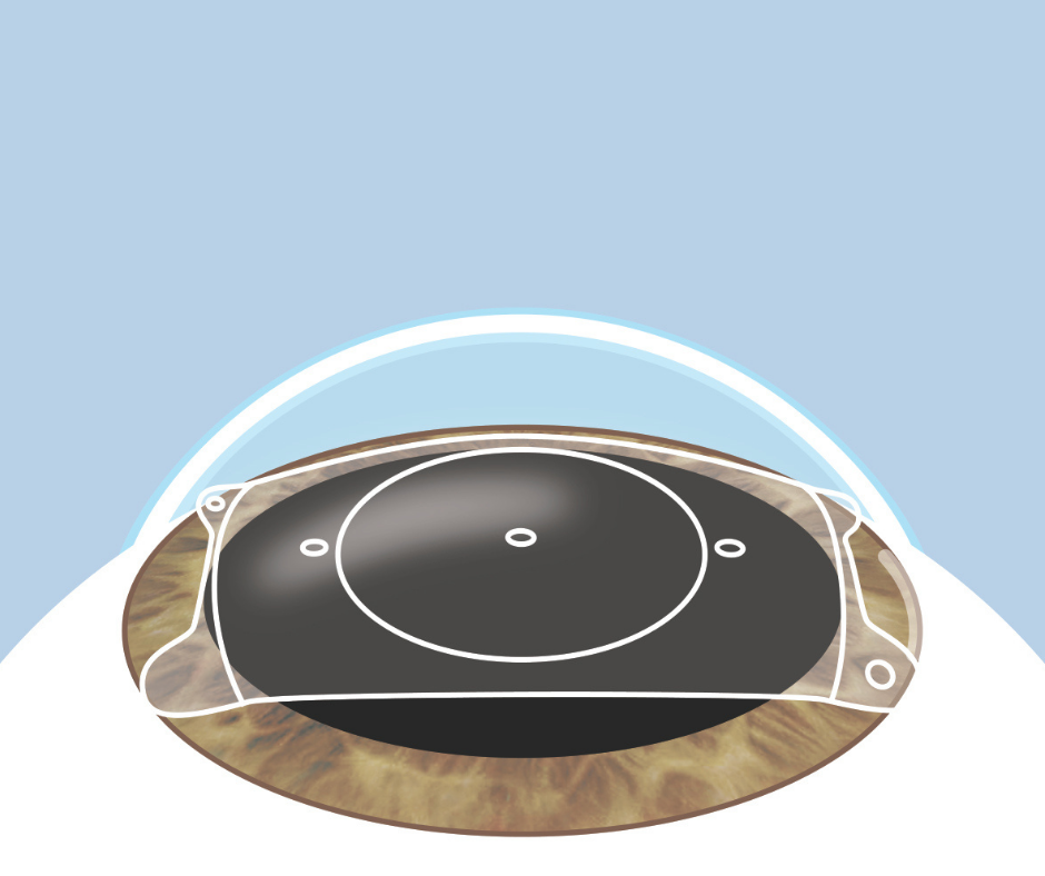 眼の中は、眼圧を保つとともに角膜・水晶体の栄養補給の役目を果たす「房水」で満たされています。このレンズには光学部中央の 0.36mm の孔(あな)があるため、従来のICL手術における房水循環のための虹彩切開を不要としました。同時に房水障害による白内障発生率や眼圧上昇のリスクを低下させました。