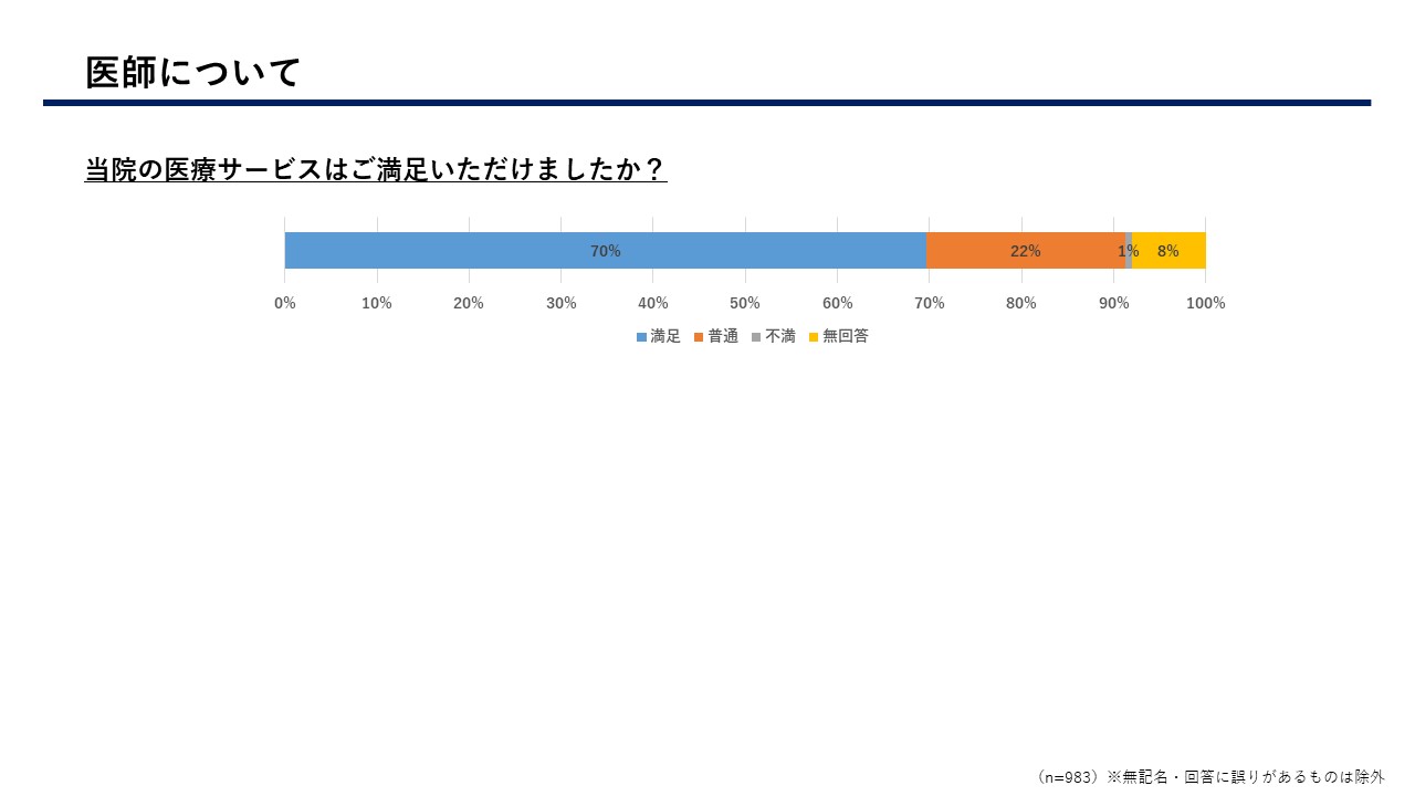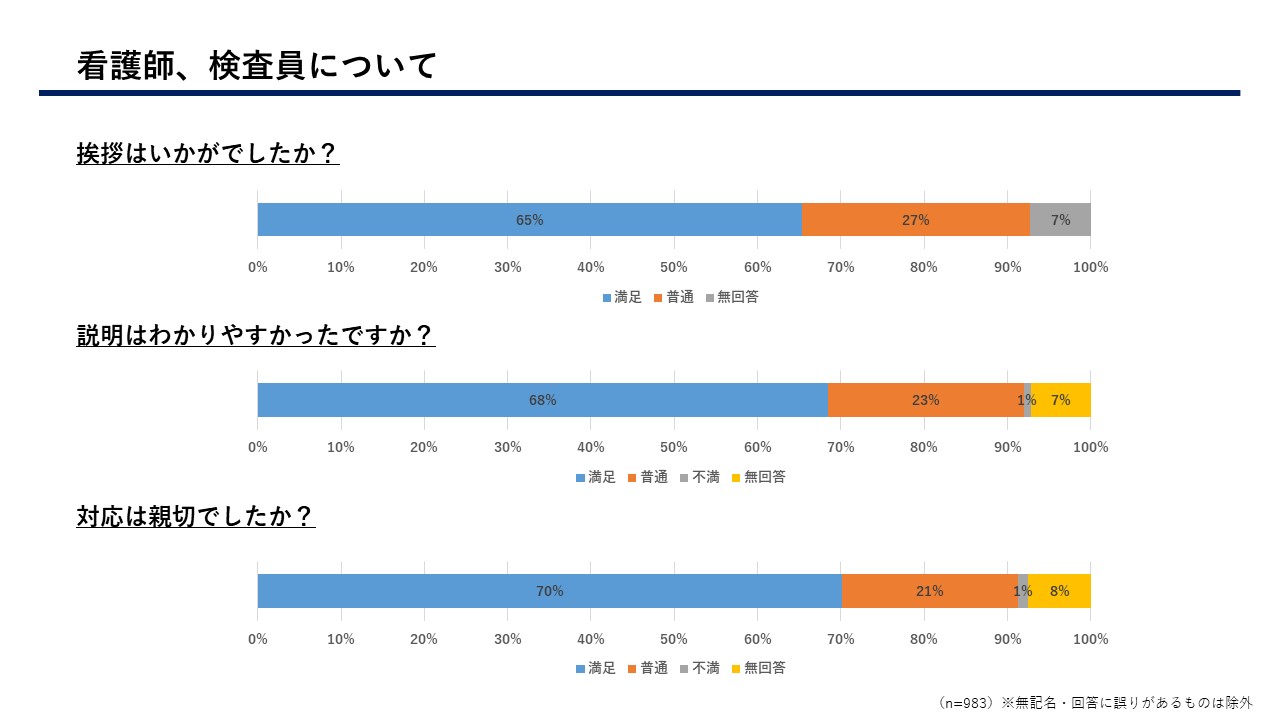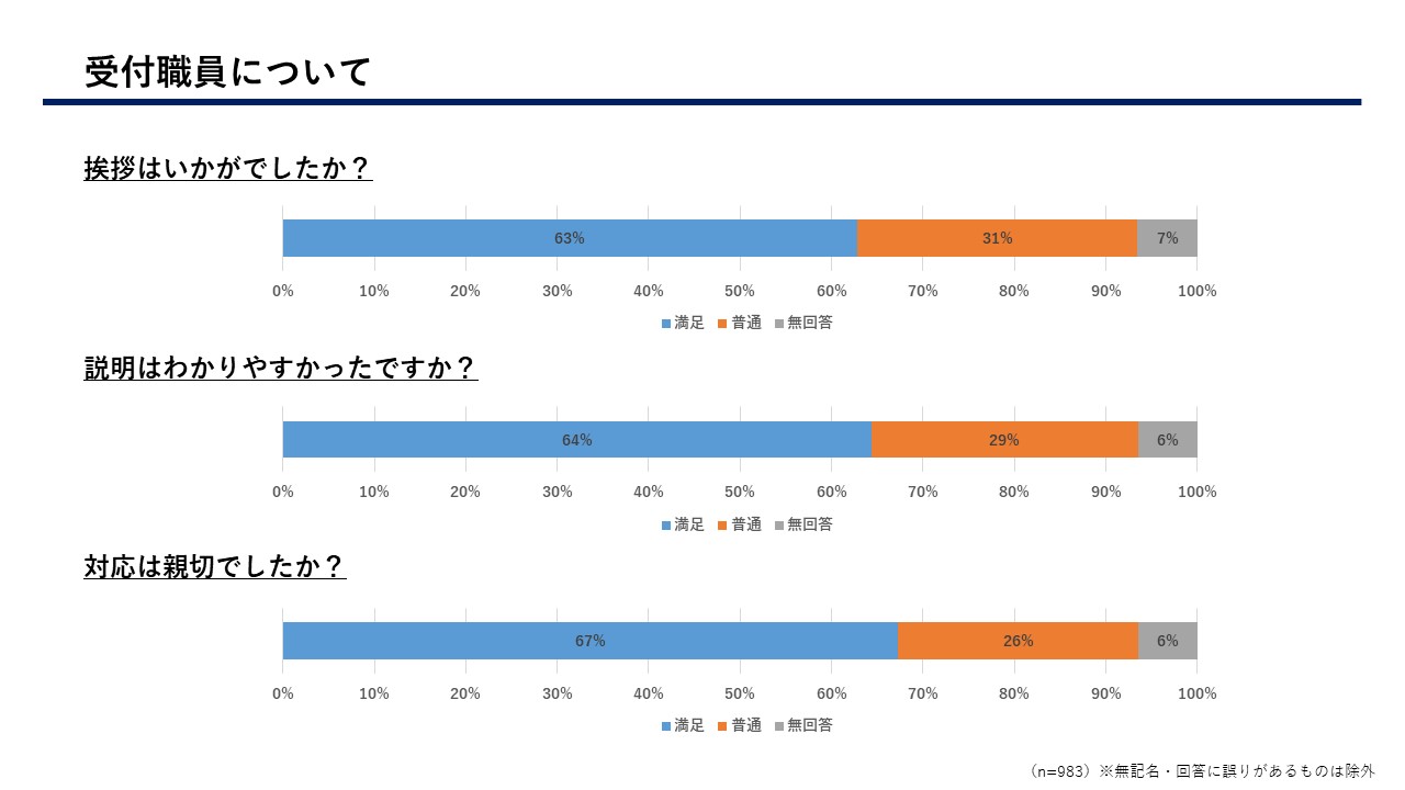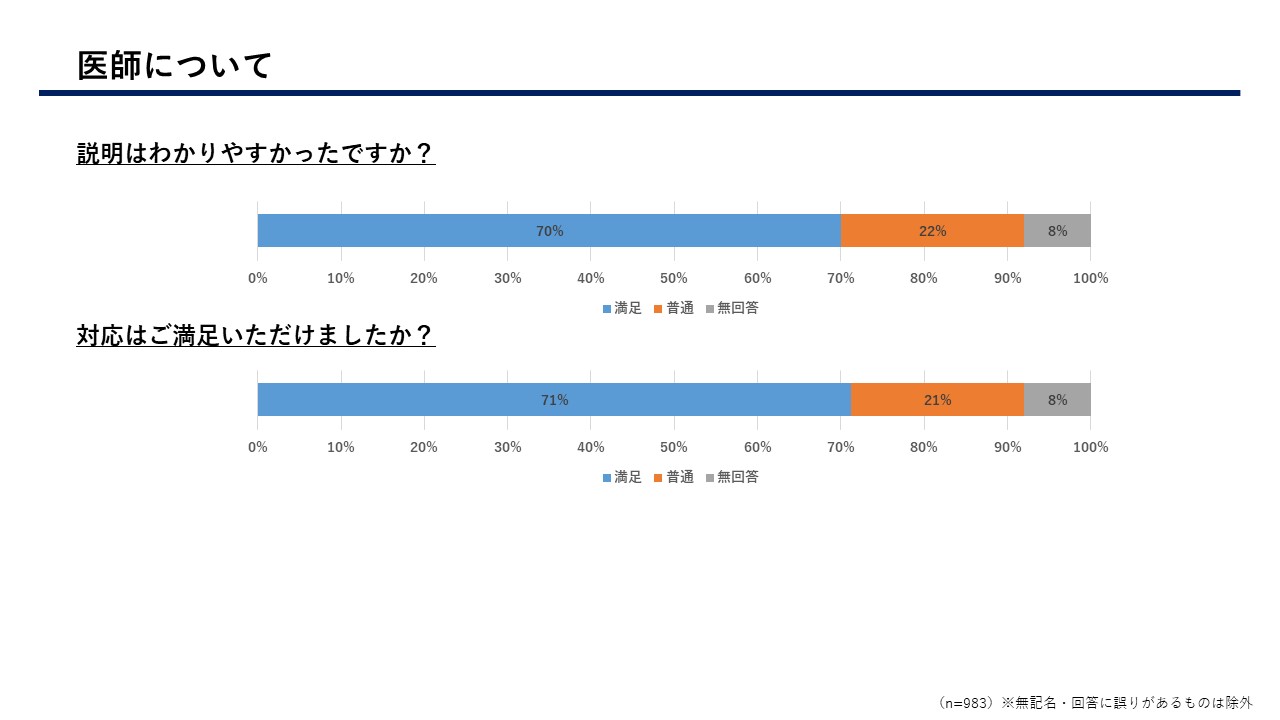 患者さまにはアンケートにご協力いただき、多くのご意見、ご要望等をいただきまして誠にありがとうございました。