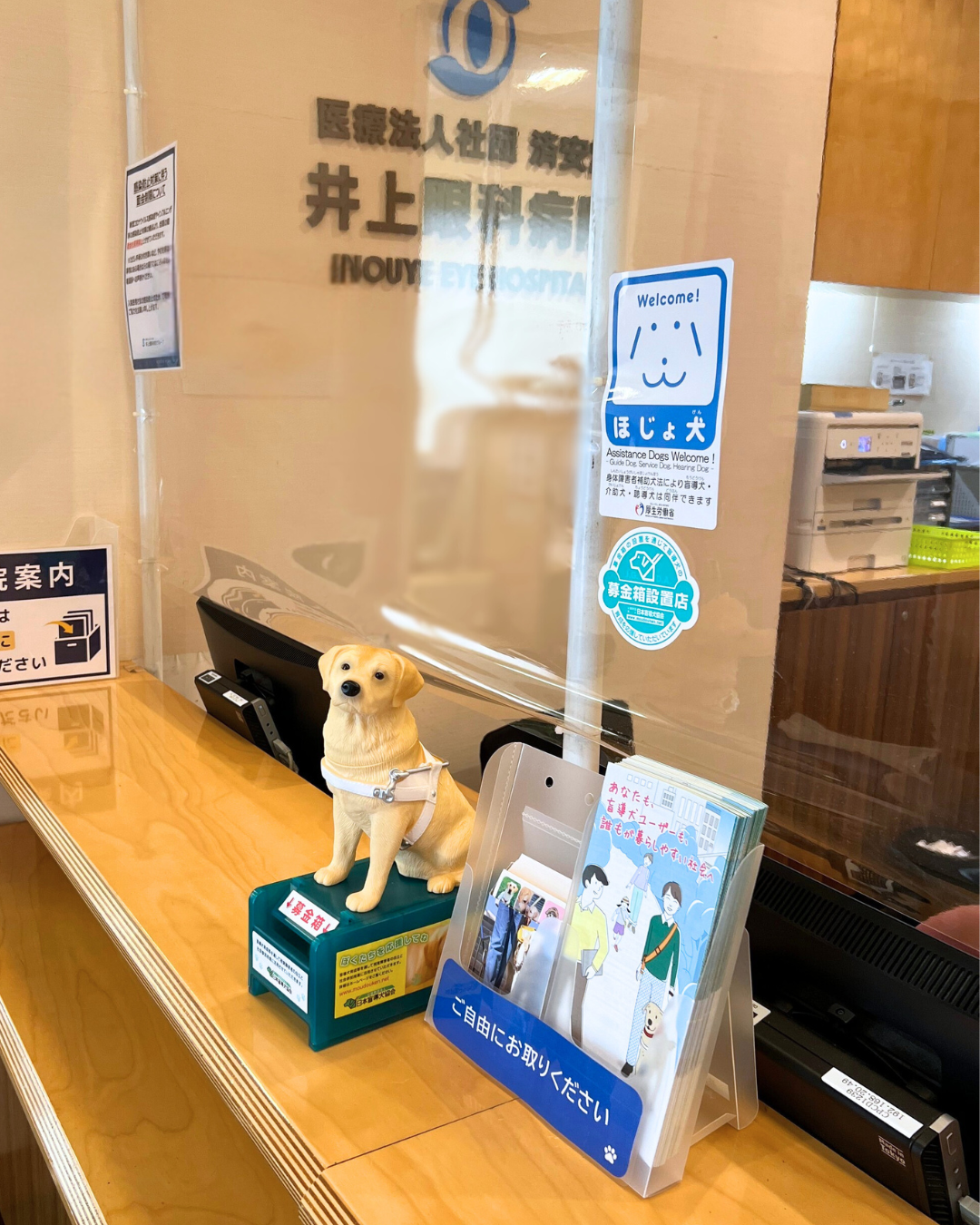 このたび、井上眼科病院とお茶の水・井上眼科クリニックの2施設に日本盲導犬協会の募金箱を設置いたしました。