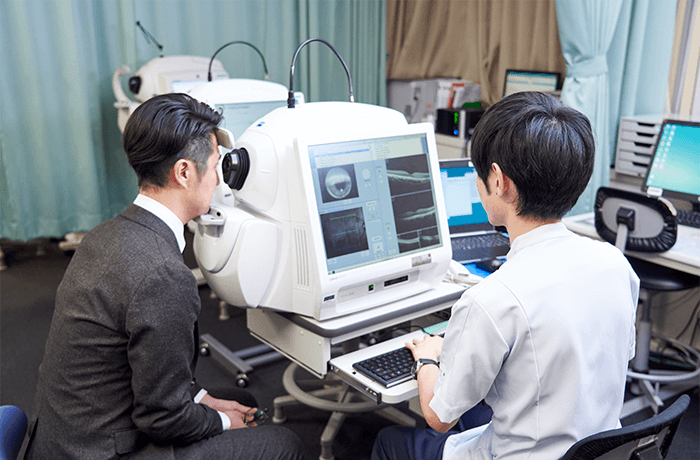 | 三次元眼底解析検査(OCT) | 赤外線で眼の中の断層撮影を行い、網膜の層の状態などを撮影します。黄斑疾患、緑内障の診断が可能です。 |